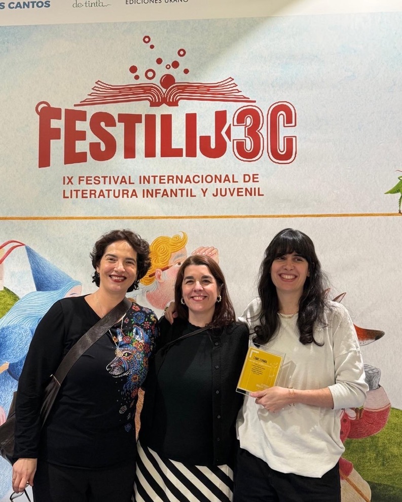 En la foto, de izquierda a derecha, Ana Laura Álvarez, nuestra maravillosa editora, yo, y Helena Bonastre, la ilustradora con la que he tenido la suerte de compartir esta aventura.